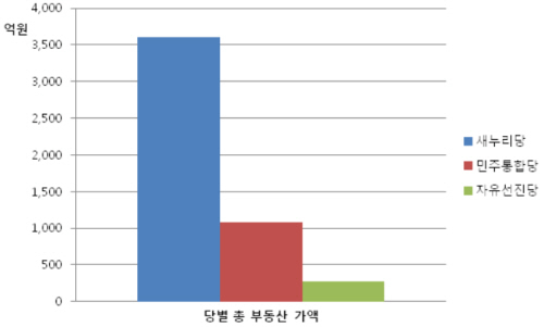 〈그림2〉정당별 총 부동산 가액 그래프