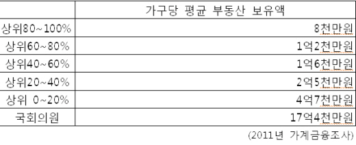 국회의원들은 상위 20%부동산 부자들에 비해 4배나 많은 부동산을 소유
