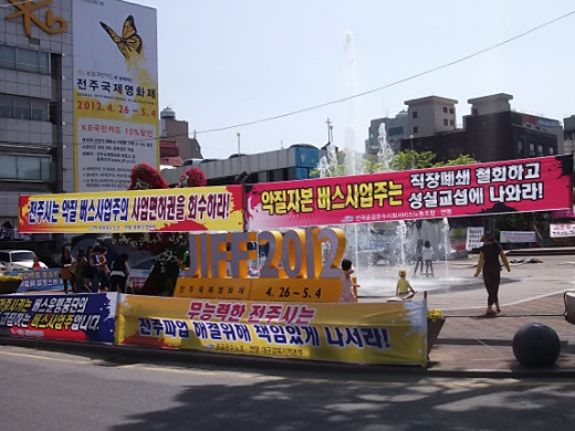 | ▲ 전북 버스노동자들의 농성이 진행되고 있는 전주오거리. 이곳에서 전주국제영화제가 열릴 예정이다. ⓒ연정 |