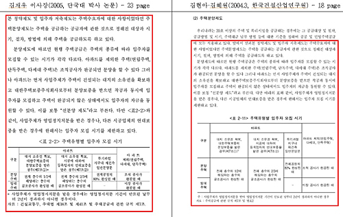 또 "김 이사장 논문의 제3장 '주택공급의 효율화 요인 분석' 부분은 이모 씨 외 2명이 2004년 발표한 한국건설산업연구원 보고서 등 기존 보고서 3편의 내용을 순서만 바꿔 짜깁기한 것"이라고 강조했다.