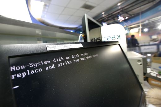 | ▲ 지난 20일 해킹 피해가 발생한 서울 여의도 KBS 본사 보도국의 컴퓨터 화면. ⓒ뉴시스 |