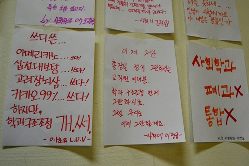 노준원 북한학과 학생회장은 "학교가 학과에 서열을 매겨 자부심을 느끼며 공부하던 학생들이 상처를 입었다"고 말했다. 노 회장은 "학교 측은 연계전공이라는 말로 '과목은 남겨두겠다'고 하지만 이것은 눈속임일 뿐, 학과가 사라졌는데 무슨 소속감으로 공부하겠느냐"고 주장했다.