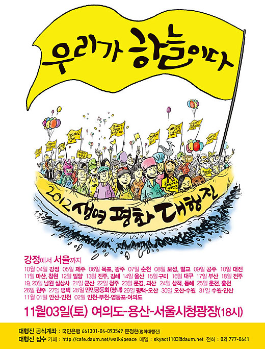 한국 정부는 2013년에 UN 인권위원회 이사국으로 참여하려고 하고 있다. 그런데 정부는 강정마을에서의 폭력, 4대강 건설 강행, 쌍용자동차 노동자 탄압, 용산 철거민 강제진압 등 지속적으로 국가 폭력을 자행하고 있다. UN에서도 이 사건들과 관련해 인권 침해에 대한 경고 조치와 사실 확인을 요청하는데도 불구하고 한국 정부는 묵묵부답이다. 특히 강정마을 해군기지 사업은 마을 공동체와 주민들의 삶을 무너뜨리고 평화 활동가들과 성직자들을 죽음으로 내몰고 있다.