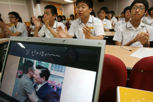 ▲ 미국의 현실주의가 새로운 질서의 형성을 촉진할 수 있는 능력과 의지가 약하다면 상황의 변화를 촉진할 수 있는 가장 중요한 동력으로서 남북관계가 갖는 의미는 더욱 커질 것이다. 사진은 지난달 13일 오전 경기도 수원시 매현중학교에서 진행된 '6.15 남북공동선언 7돌 기념 남북 공동수업'에서 학생들이 남과 북을 절대 떨어질 수 없는 김과 밥의 관계로 개사한 가요 '김밥'을 부르고 있는 장면 ⓒ연합뉴스