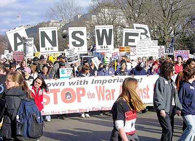| ▲ 2003년 이라크 전쟁 직전 워싱턴에서 벌어진 반전시위 장면. 들끓던 미국의 반전시위는 왜 잠잠해진 것일까? ⓒ연합뉴스 |