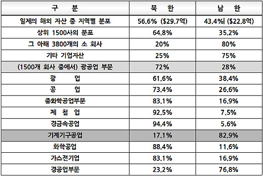 아래 <표 1>은 일제의 해외 자산 중에서 남북한별 분포 상황을 정리한 것이다.