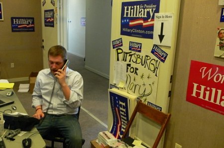 8일 피츠버그의 오바마 선본에 앞서 들렀던 힐러리 선본의 분위기는 RNC의 그것과 닮아 있었다. 피츠버그 중심가의 건물 한 층을 전부 쓰고 있는 힐러리 사무실에는 달랑 세 명의 관계자들만이 모습을 보였다. 사람들이 다 어디에 있느냐는 질문에 공보담당 크리스틴 리는 "현장에서 유권자들을 만나고 있다"고 답했지만 액면 그대로 믿어지진 않았다.