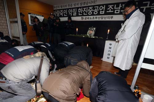 "나는 회사를 증오한다. 자본, 아니 가진 자들의 횡포에 졌다. 어떻게 해야 할 지 모르겠다. 심장이 터지는 것 같다. 내가 못 가진 것이 한이 된다. 민주노조 사수하라. 손해배상 철회하라. 태어나 듣지도 보지도 못한 돈 158억. 죽어라고 밀어내는 한진 악질자본 박근혜가 대통령 되고 5년을 또…. 못하겠다. 지회로 돌아오세요. 동지들 여태껏 어떻게 지켜낸 민주노조입니까?? 꼭 돌아와서 승리해주십시오…. 돈이 전부인 세상에 없어서 더 힘들다…."