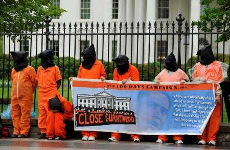 | ▲ 지난 4월 29일 오바마 대통령의 취임 100일에 맞춰 관타나모 문제의 조속한 해결을 바라는 시위가 백악관 앞에서 열리고 있다. ⓒ로이터=뉴시스 |