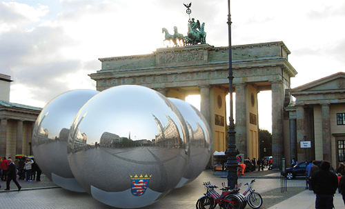 뒬멘 - 당신이 내년에 독일에서 실현시키고자 제안한 프로젝트인 '독일통일 20년, 빛과 소리의 반향(反響), 미디어 이동설치미술'에서 나는 그런 이상을 제대로 구현하고 있다고 봤다. 그런데 그 설치조형물에서 둥근 '공'이 의미하는 바는 무엇인가?