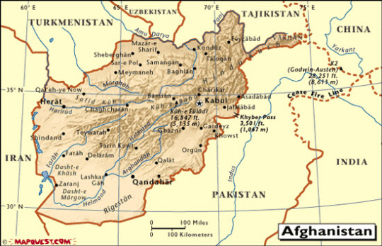 | ▲ 아프가니스탄의 주요 도시와 지형 ⓒmapquest.com |