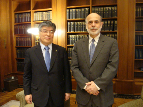 ▲ 김중수 한국은행 총재와 벤 버냉키 Fed 의장. 두 중앙은행장은 오락가락하는 정책 진단과 대응으로 시장의 불신을 사고 있다는 공통점을 지녔다. ⓒ로이터=뉴시스