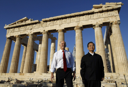 ▲ 원자바오 중국 총리가 지난 10월 그리스에서 파판드레우 총리와 만나 국채 매입 등 지원을 약속했다. ⓒ로이터=뉴시스 |