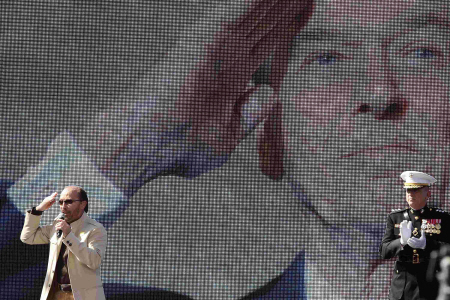 ▲ 지난 6일 캘리포니아에서 열린 '레이건 탄생 100주년' 기념행사에 등장한, 경례하는 자세의 레이건 전 대통령의 생전 모습. '강력한 미국'을 되살렸다고 자부하는 듯하지만, 그 이면에는 '제3세계의 피'가 흐르고 있다. ⓒ로이터=뉴시스 |