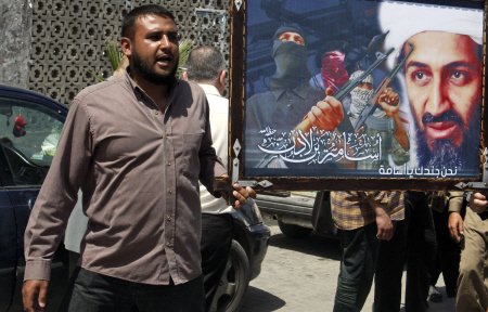 ▲ 오사마 빈 라덴이 미국에 의해 '암살' 당했다는 분노가 이슬람권에서 퍼져가고 있다. 팔레스타인에서 많은 사람들이 빈 라덴의 초상을 들고 성전을 외치는 시위에 나서고 있다. ⓒAP=연합 |