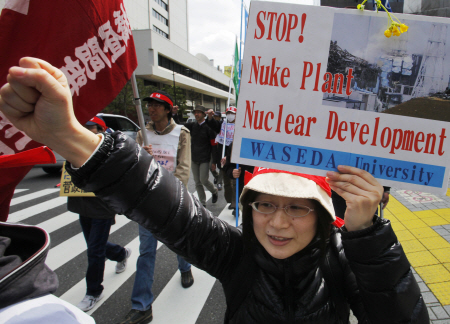 | ▲ 일본에서는 후쿠시마 사태 이후 원전 안전성에 대한 우려가 치솟고 있다. 사진은 지난 4월 원전 반대 시위에 나선 도쿄 (東京)시민. ⓒAP=연합뉴스 |