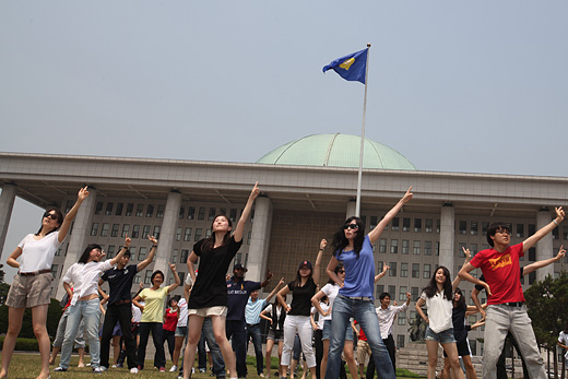 ▲ 20일 국회에서 진행된 난민의 날 기념. 플래시몹 ⓒ프레시안(최형락)