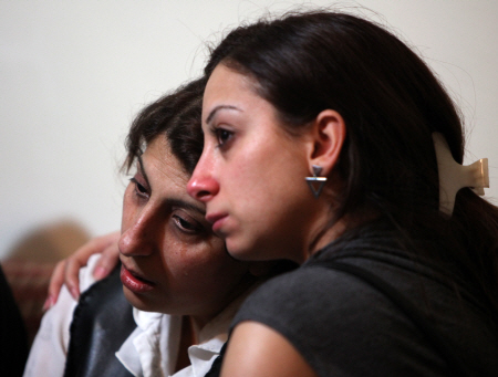 | ▲ 9일 시리아군이 국경을 넘어 총격을 가해 레바논 기자 알리 샤만이 피살됐다. 유족들이 망연자실한 표정을 짓고 있다. ⓒAP=연합 |