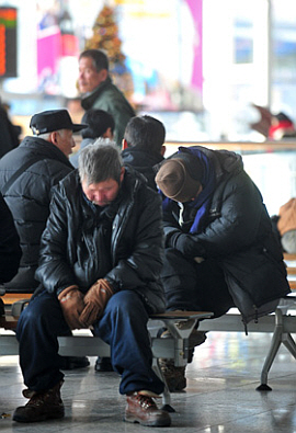 | ▲ 한겨울 서울역 대합실에서 추위를 피하는 노숙인. ⓒ뉴시스 |
