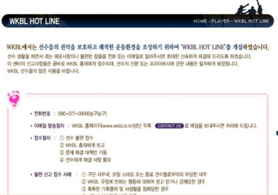 | ▲ WKBL 홈페이지에 공지돼 있는 'WKBL HOT LINE' ⓒ프레시안 |