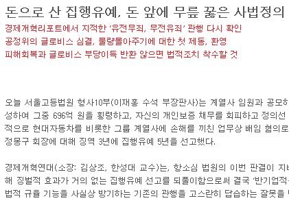 ☞경제개혁연대 논평: '돈으로 산 집행유예, 돈 앞에 무릎 꿇은 사법정의' 전문보기