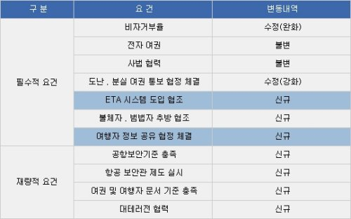 ▲ 미국 비자면제프로그램(VWP) 가입 조건. 미국 정부는 최근 가입 요건 대폭 신설해 새로 가입하는 국가들은 이를 따라야 한다고 요구하고 있다.