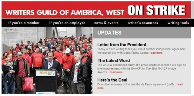 | ▲ 미국 작가조합 홈페이지(www.wga.org) 화면의 일부. |