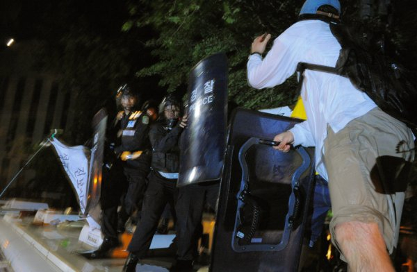 시민과 경찰이 가장 격렬하게 대치한 곳은 청와대 정면으로 난 길이었다. 경찰은 한 시간이 넘게 물대포를 사용했다. 차량 위에서 정부를 비판하던 한 시민은 물대포를 정면에서 맞아 기절했다. 오전 4시경 시민들은 "물대포를 정면으로 맞은 고교생이 실명 위기다"고 전했다.