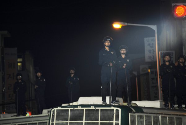 오전 4시 30분, 경찰은 다시 물대포를 쏘기 시작했다. 물이 떨어진 경찰은 소방차까지 동원했다. 강제 해산이 시작됐다.