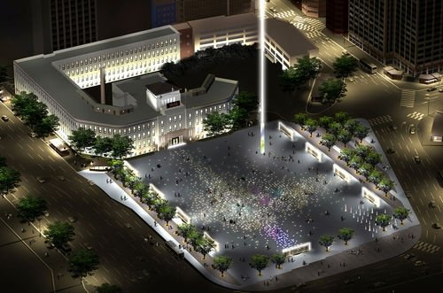 ▲지난 2003년 3월 발표된 서울시의 설계안 공모 당선작인 '빛의 광장'. 박막액정표시장치(LCD)를 광장 바닥에 설치해 정보 광장을 만든다는 계획이었으나 기술상 문제와 공사 기간 문제로 취소됐다. ⓒ연합뉴스