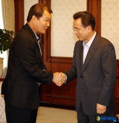 ▲남 회장은 지난 7일 한승수 총리를 만나 미국산 쇠고기 수입에 항의하며 한우산업 안정화를 요구했다. ⓒ뉴시스