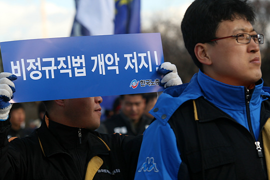 | ▲ 노동계는 비정규직 기간 제한 조항의 유예 방향에도 발끈하고 있다. "비정규직법을 실질적으로 무력화시키는 내용"이라는 것이 이유다.ⓒ프레시안 |