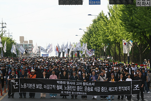 그러나 민주노총 임성규 위원장은 승리를 자신했다. 임 위원장은 "다들 만만치 않다고 자꾸 그러는데 우리가 각오하고 투쟁하면 승리할 수 있는 만만한 상황"이라며 "고인은 스스로 목숨을 끊은 것이 아니라 거꾸로 가는 역사의 수레바퀴에 의해 죽임을 당한 것이며 또 다른 노동자가 수레바퀴에 깔리기 전에 싸워야 한다"고 호소했다.