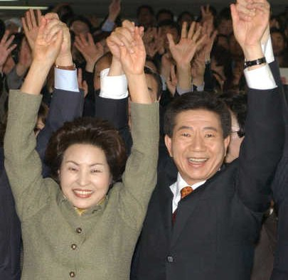 | ▲ 2002년 대선 승리 후 지지자들에게 화답하고 있는 노 전 대통령. ⓒ연합 |