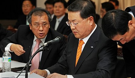| ▲ 박해춘 연금공단 이사장(가운데)이 최근 다시 국민연금의 주식투자 확대 등을 언급하고 나섰다. ⓒ뉴시스 |