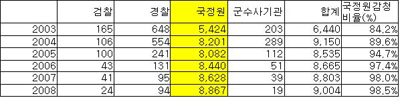 | ▲ 전화번호/아이디 건수별 감청 통계 (정보통신부/방송통신위원회 발표) |