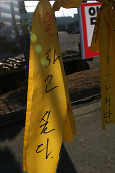지난 6월 19일이었던가요? 서울에서 가두 투쟁을 마치고 동지들을 태운 버스가 끝도 없이 공장으로 들어오고, 동지들의 손에 하나 둘 촛불이 켜져 1만 개의 촛불이 공장을 환하게 밝혔던 모습이 떠오릅니다. 손에 든 촛불 하나하나의 온기가 이곳 70미터 굴뚝 위로 고스란히 전달되어 저희들의 눈시울을 뜨겁게 만들었습니다.
