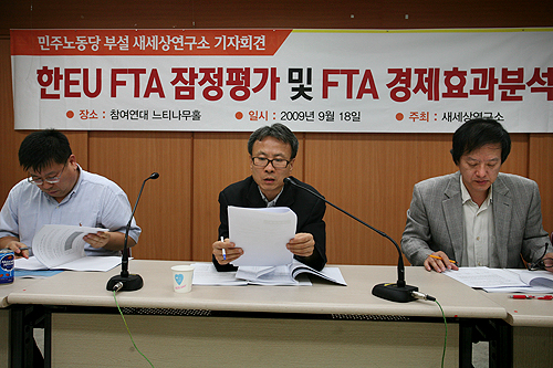 국제통상연구소와 민주노동당 부설 새세상연구소는 18일 참여연대 느티나무홀에서 이와 같은 내용이 담긴 '한-EU FTA 잠정평가 및 FTA 경제효과분석' 발표회를 열었다.