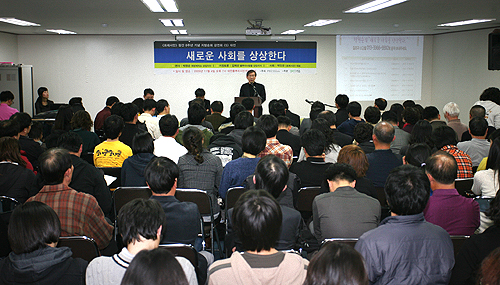 "이명박 정부의 후퇴가 우리한테 안 좋은 것만은 아니다. 지금의 어려운 시기가 우리를 훨씬 강하게 만들 수 있다. 사실 진보세력이 잘못한 부분도 많다. 지난 10년 동안 시민사회는 안주하지 않았나 생각한다. 김대중-노무현 정부가 우리사회에 불가역적인 변화를 만들어낼 만큼 충분한 정책과 콘텐츠를 갖고 권력을 행사했나. 이런 측면에서 생각하면 반성할 게 많다고 생각한다.