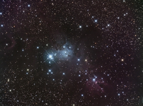 | ▲ 크리스마스트리성단(Christmas Tree cluster)으로 유명한 NGC 2264. NGC 2264는 산개성단과 발광성운으로 이루어져 있으며, 발광성운의 모습이 크리스마스트리와 비슷하게 생겼다. 윌리암 허셀(William Herschel)이 1784년에 산개성단을, 그리고 1785년에 성운을 발견하였다. ⓒ한국천문연구원(사진=심재훈) |