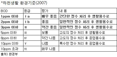 "국가별 수질지수는 우리나라가 122개 국가 중 8위를 차지해 수질은 상대적으로 양호한 것으로 나타났다."